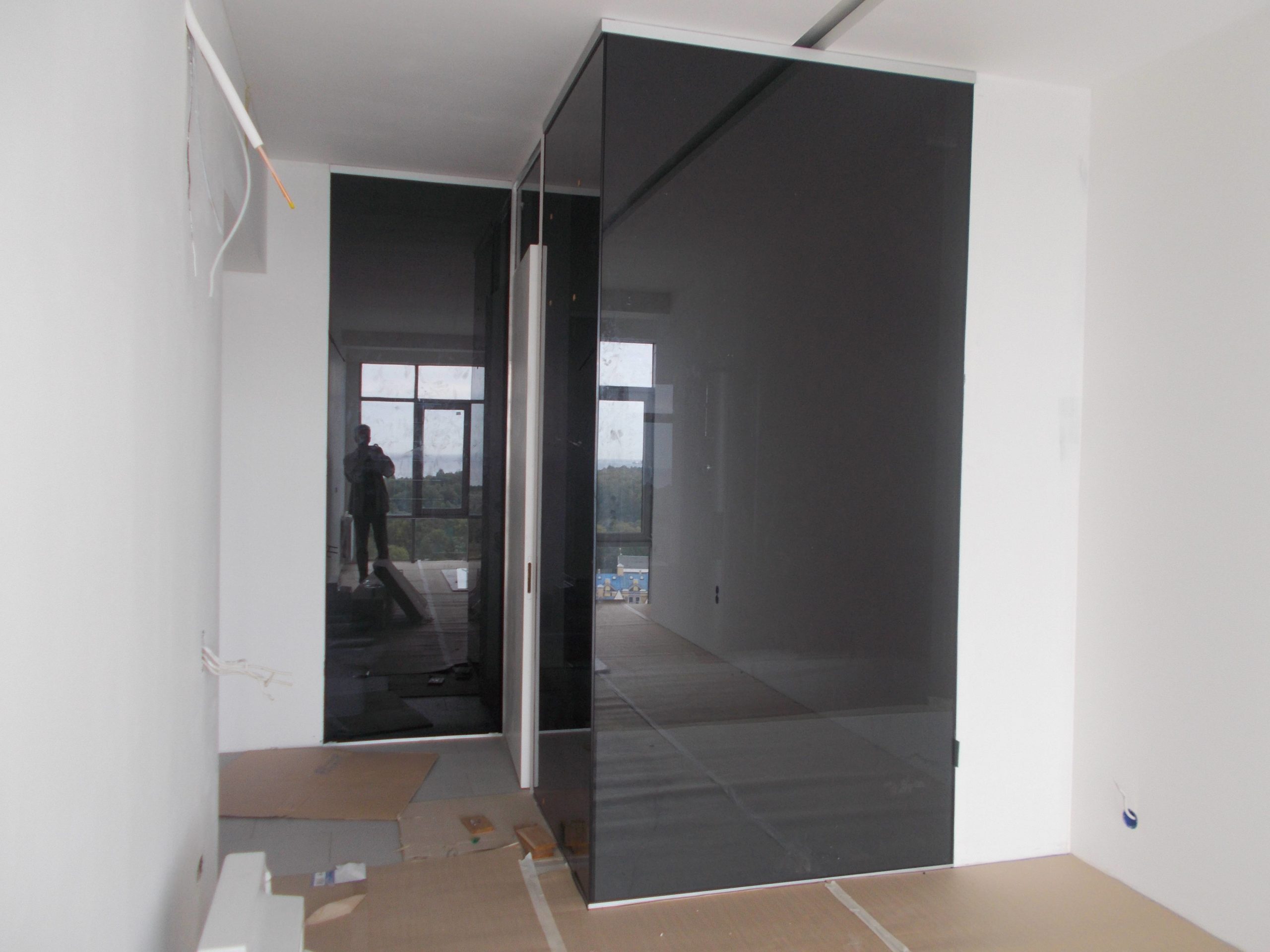 - Двери из стекла, которые открываются в одну сторону. Крепление их к коробу производится с применением петель.