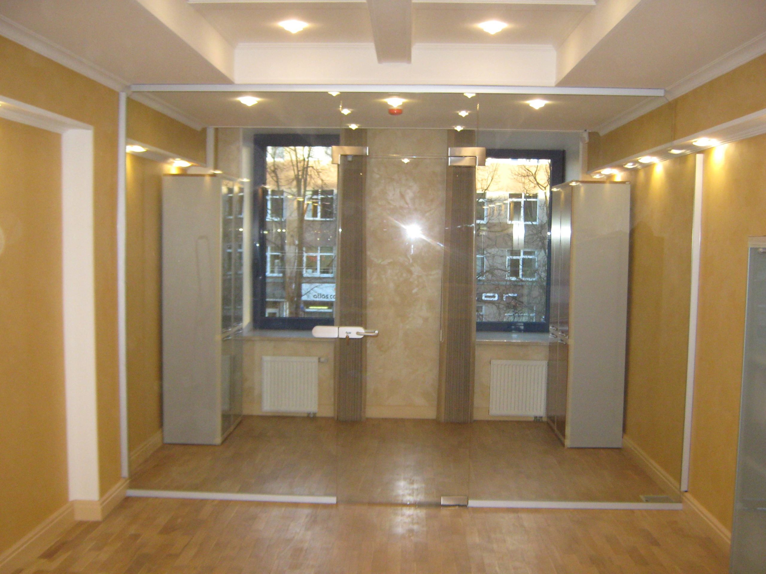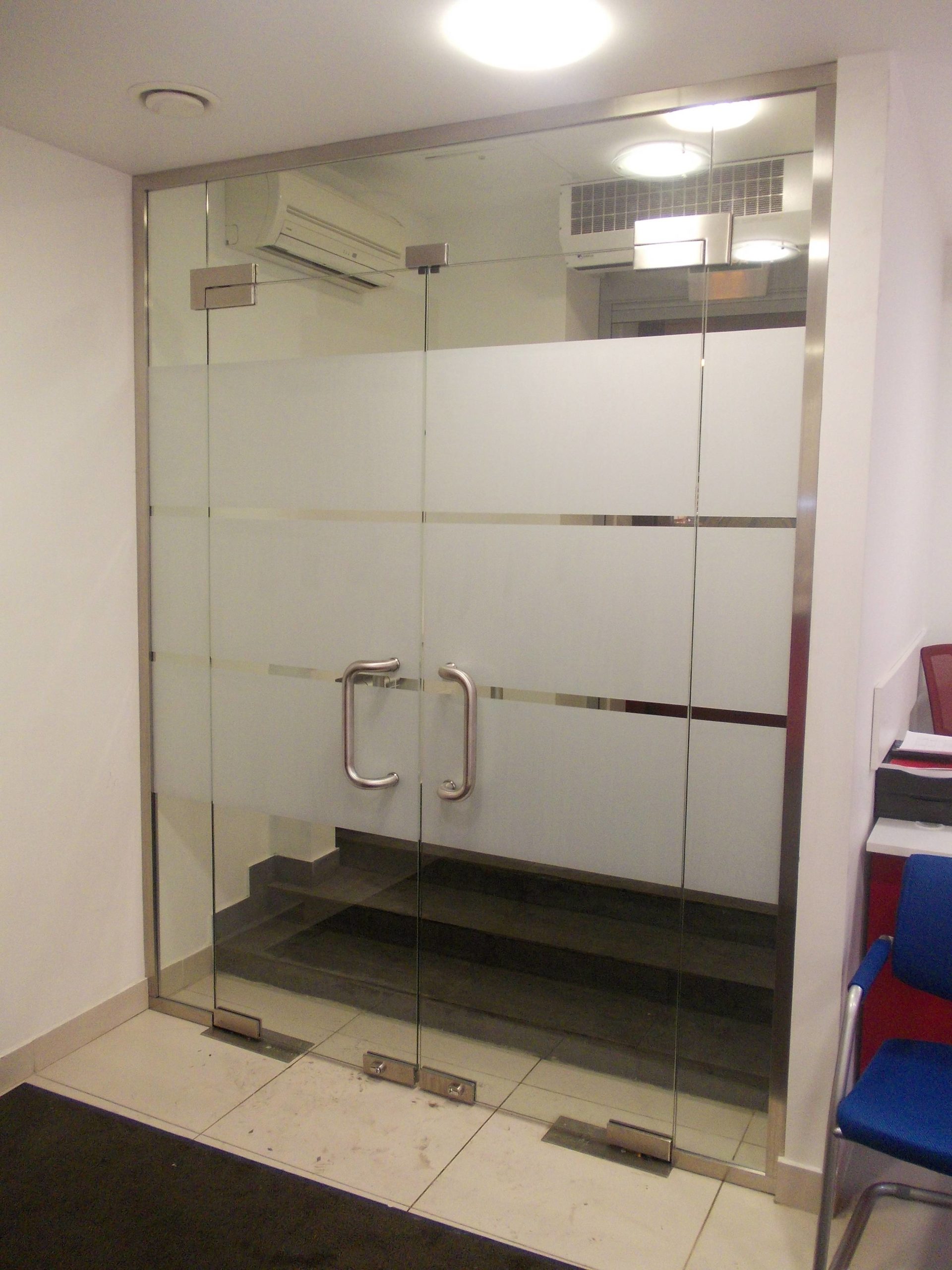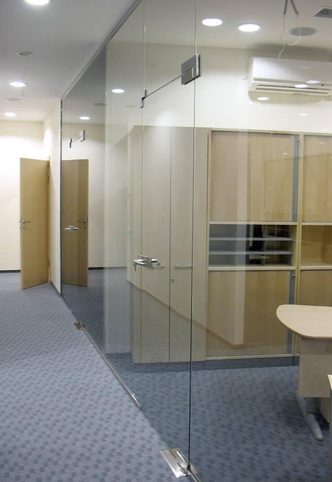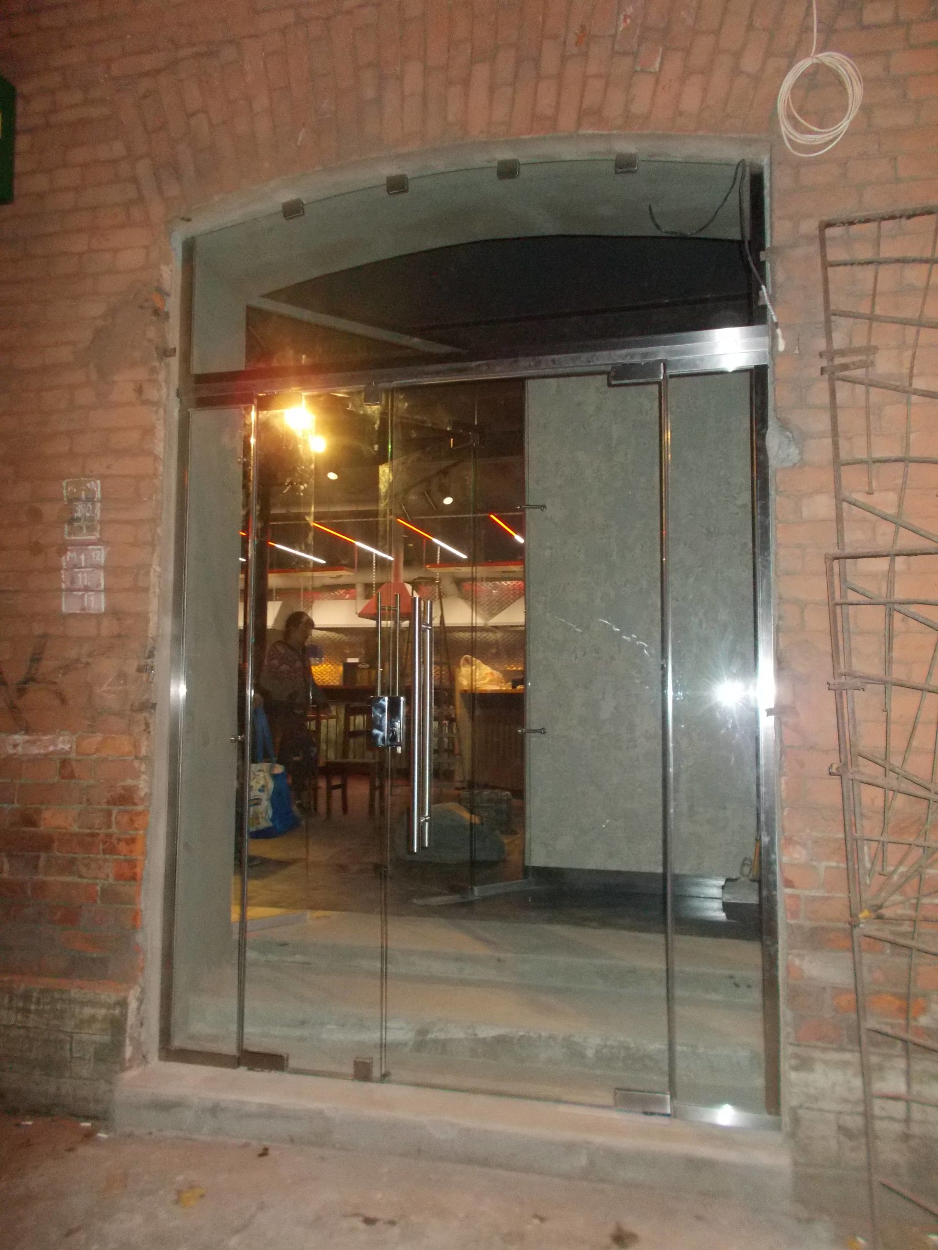 Компания «ОхтаГласс» поможет Вам в изготовлении и монтаже стеклянных дверей и входных групп. Для изготовления стеклянных дверей используется стекло 8-12 мм, в зависимости от размера и конструкции самой двери. Фурнитура к стеклянным дверям подбирается в зависимости от конструктивных и эстетических требований помещения заказчика.