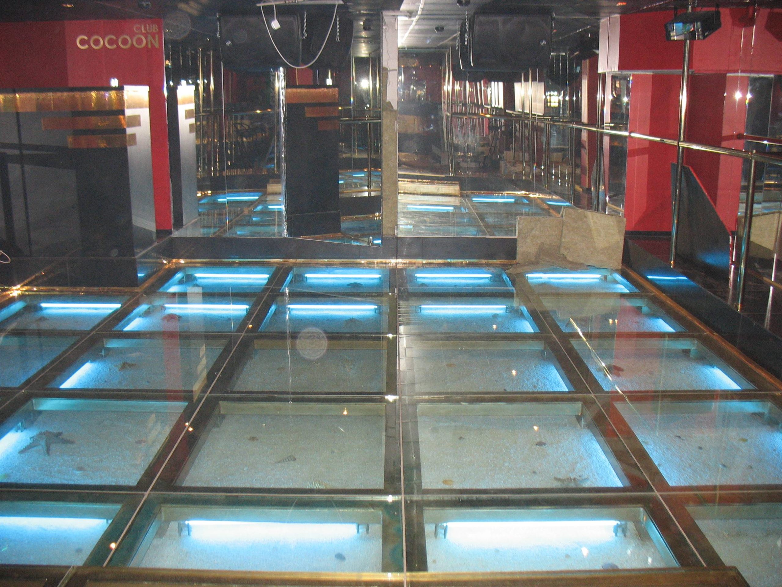 Композиция пола может быть окрашена в любые цвета, также возможно введение в неё пленочной структуры с различными изображениями, например, цветов или перьев птиц, или логотип фирмы, что, при наличии подсветки, дает великолепный визуальный эффект.