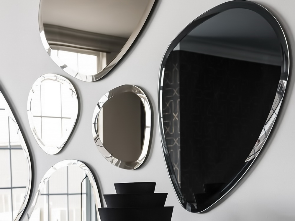 Основные варианты применения – озеркаливание стен, зеркальные панно, зеркала в рамах, в ванных комнатах, оформление мебели, зеркало в нишу, расстекловка дверей и окон, гнутые фасады, триплекс с двухсторонним фацетом, столешницы, стеклянная мебель, и прочее.