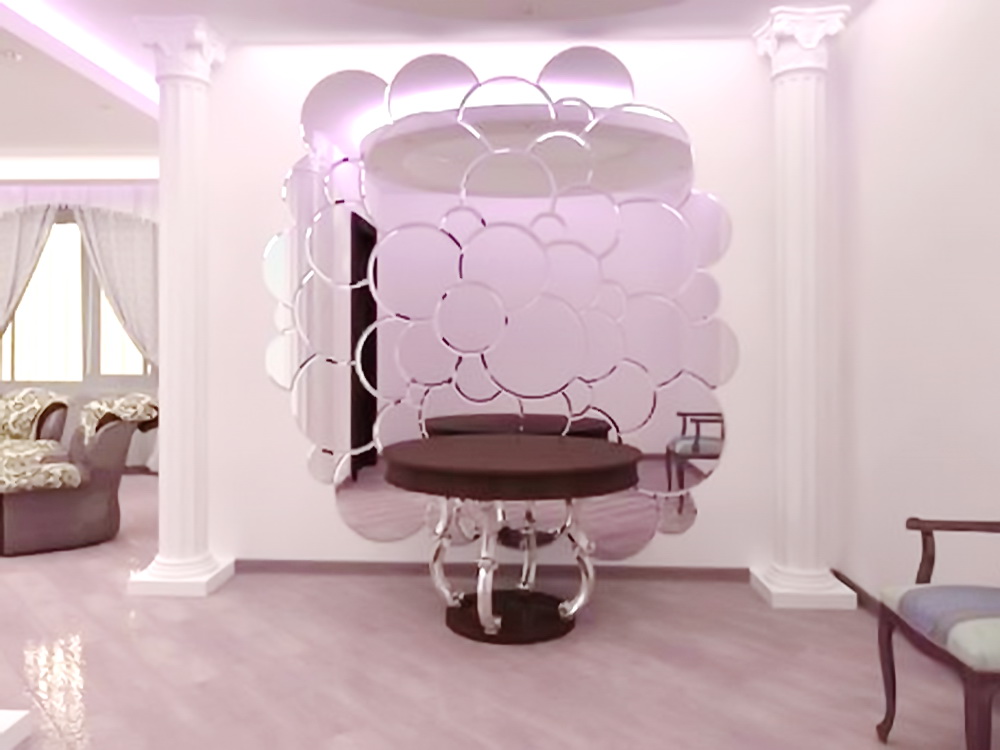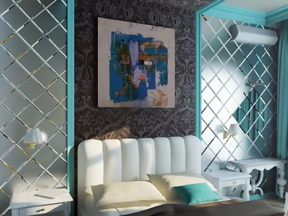 При создании интерьера с зеркалами, с применением фацетной обработки, стоит помнить, что выбранная ширина фацета и его угол будут вызывать неповторимый эффект преломления света, чаще всего, сияние или мерцание.
