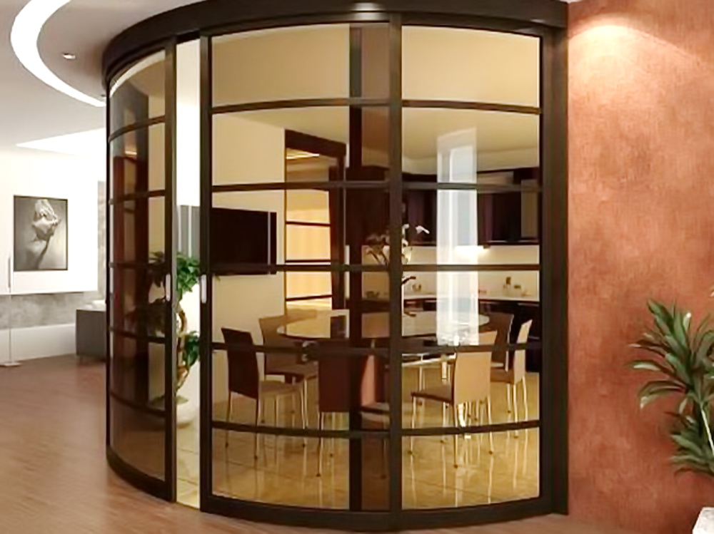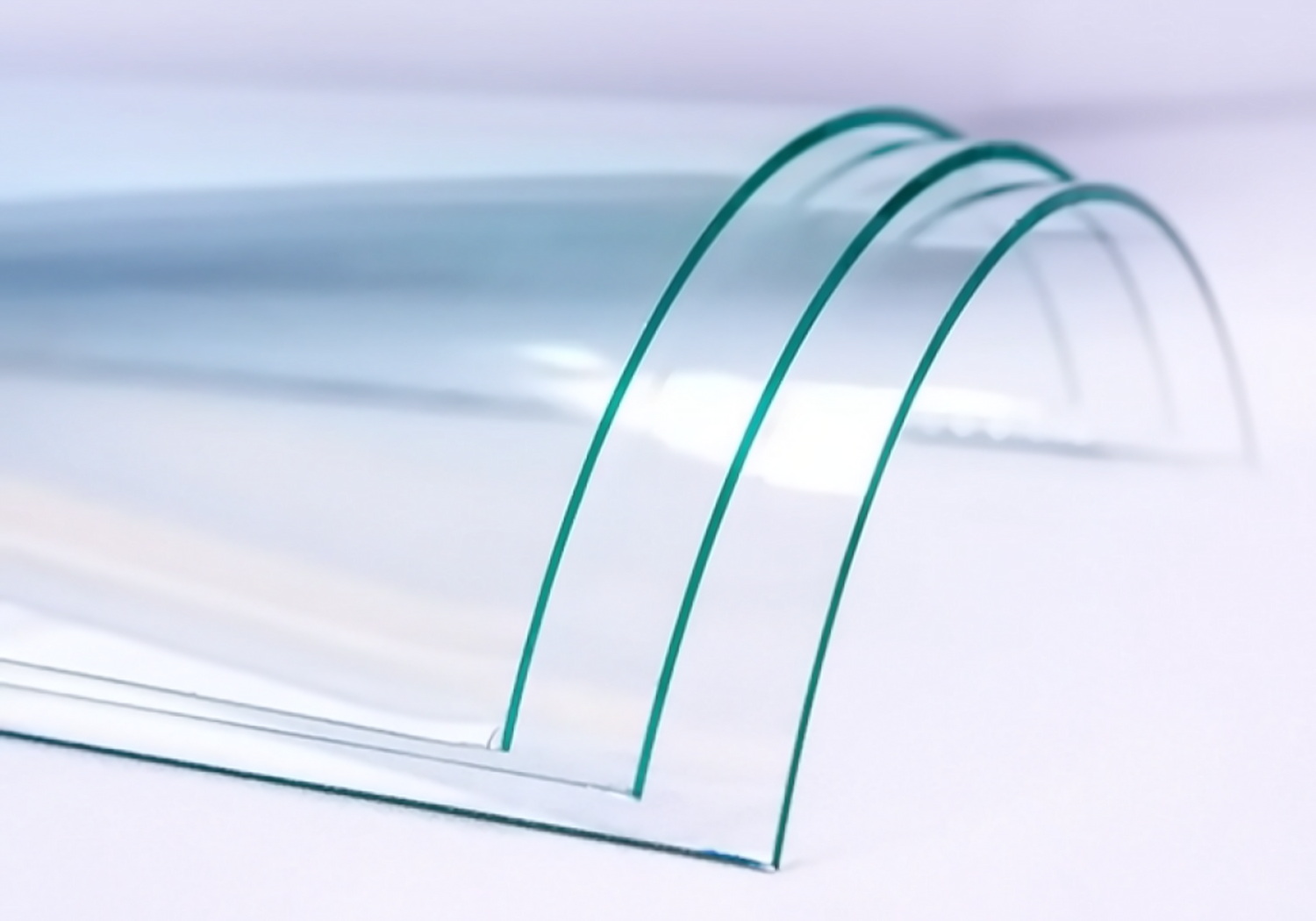 Моллирование – это гнутое стекло, изгиб которого производится в соответсвии с заданными параметрами. Такой вид стекла идёт на витражи, на изготовление радиусных перегородок и угловых фасадов мебели.
