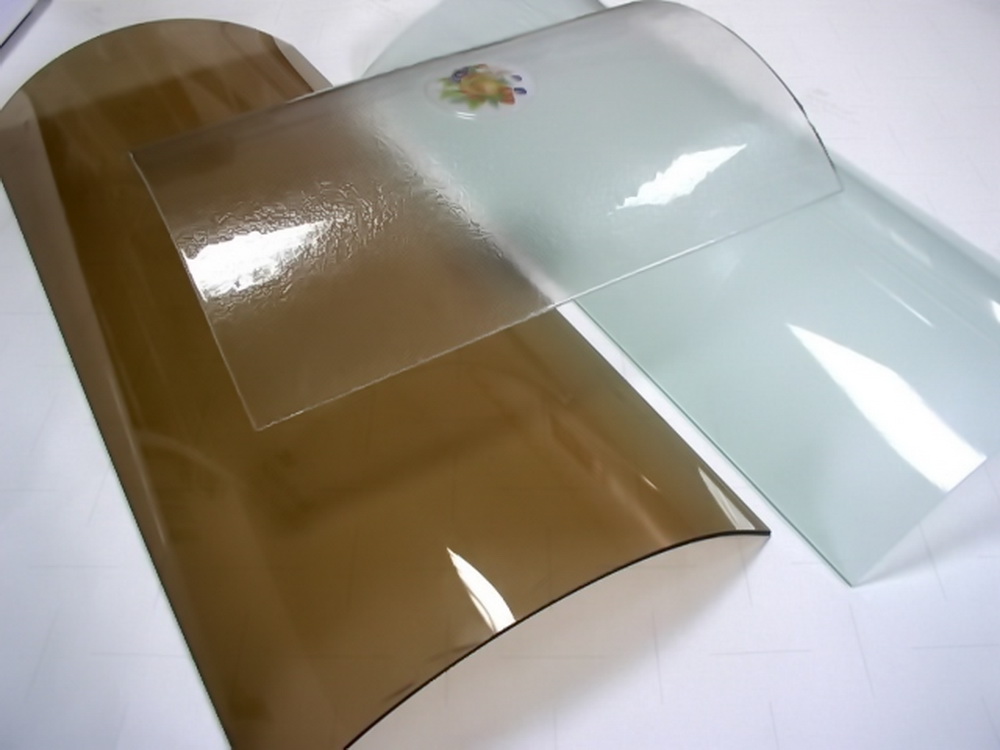 а так же возможность наклейки цветных и декоративных пленок Oracal (ссылка на каталоги пленок). - Одним из направлений дальнейшей обработки гнутого стекла является изготовление пленочного триплекса на основе пленки EVA.