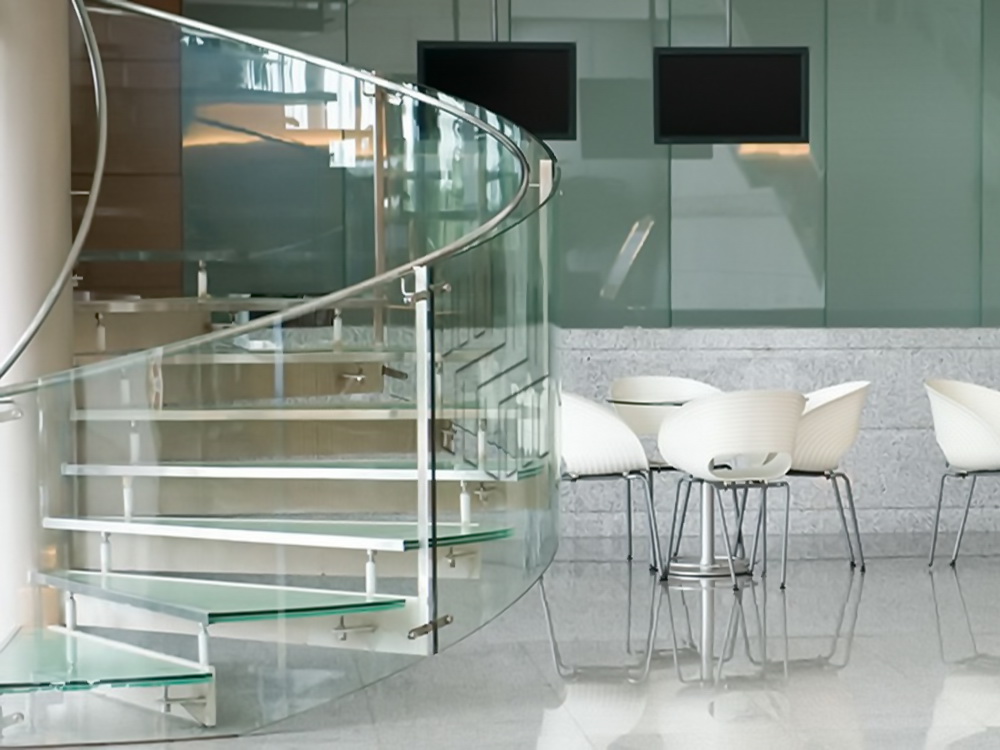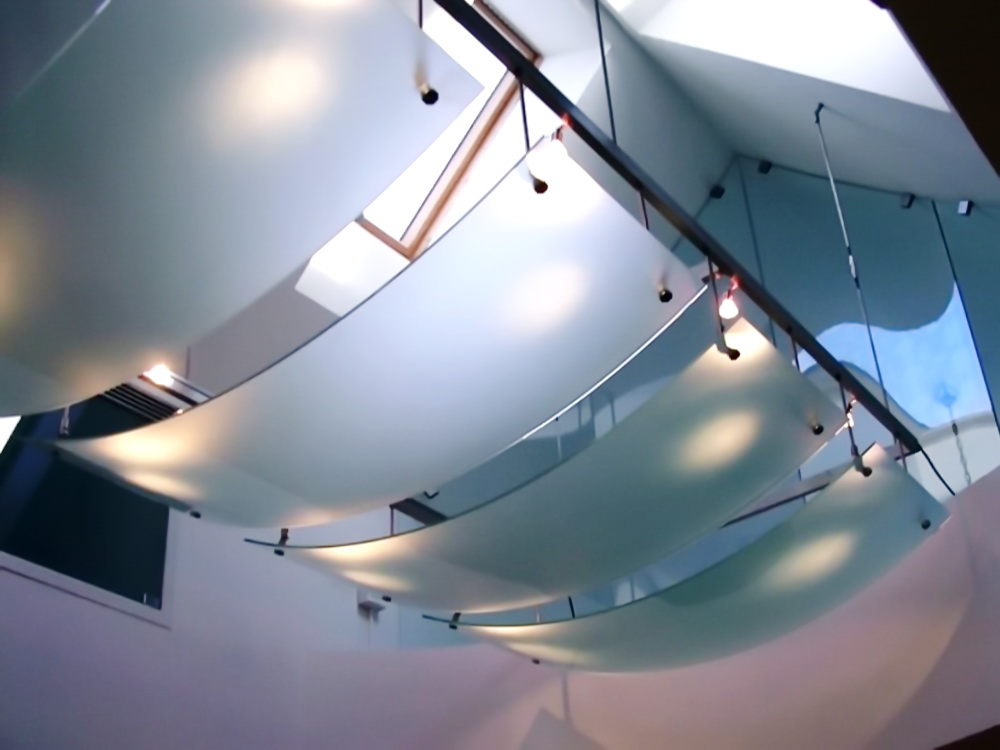 Главное преимущество данной технологии – в том широком поле, которое получают для своей работы дизайнеры и конструкторы. По своему желанию стеклу можно придать любую, под час самую сложную форму и вписать получившуюся высокопрочную конструкцию, как в современный, так и в консервативный интерьер.