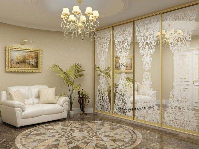 Для оформления комнаты Вы можете заказать в ООО «Охта Гласс» пескоструйный рисунок на зеркале по приемлемой цене. В шкаф купе такое зеркало будет красиво смотреться.