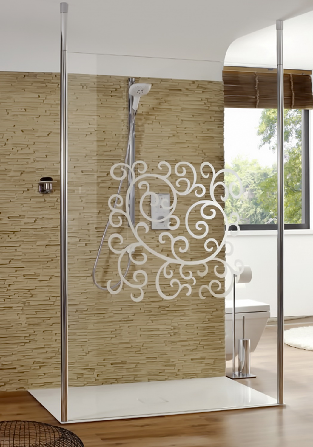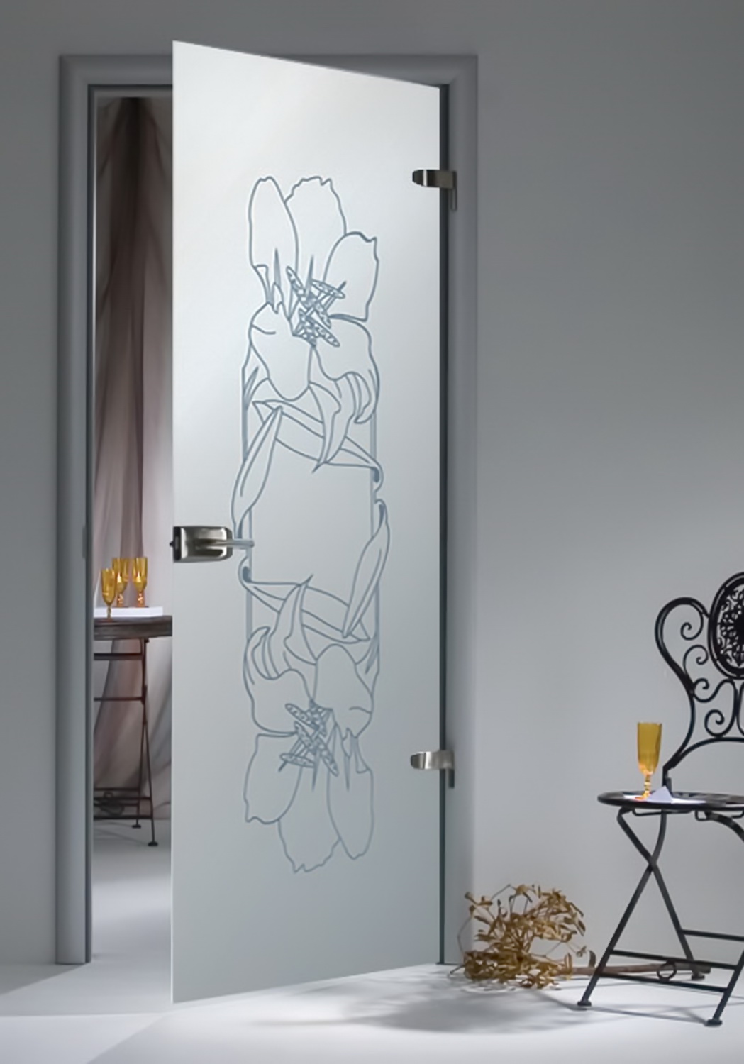 - После того, как Вы определились с дизайном своего помещения и стеклянным элементом, на который нужно нанести пескоструйный рисунок, можете выбрать изображение из нашего каталога или предоставить свое (формат файла .cdr).