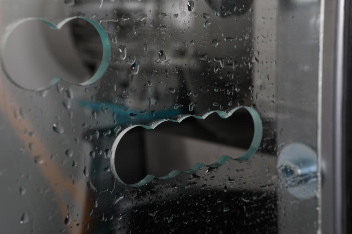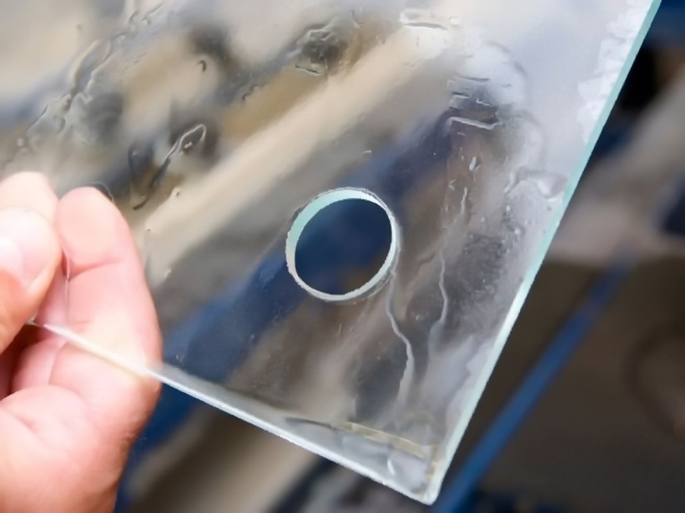 Сверление производится в зеркалах, стеклах, триплексе; в гнутом стекле до операции моллирования, в закаленном стекле до его закаливания и т.д.