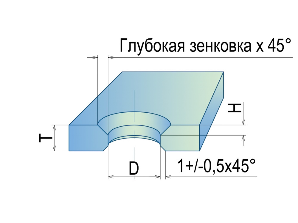 | H | глубина зенковки | оговаривается при заказе |